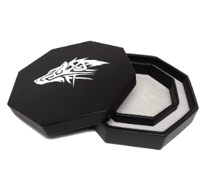 8 Inch dice tray with dice staging area by Fantasydice. Holds 5 sets of dice.