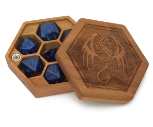 Keep your dice safe with this awesome wooden dice chest. Magnetic top keeps it secure.